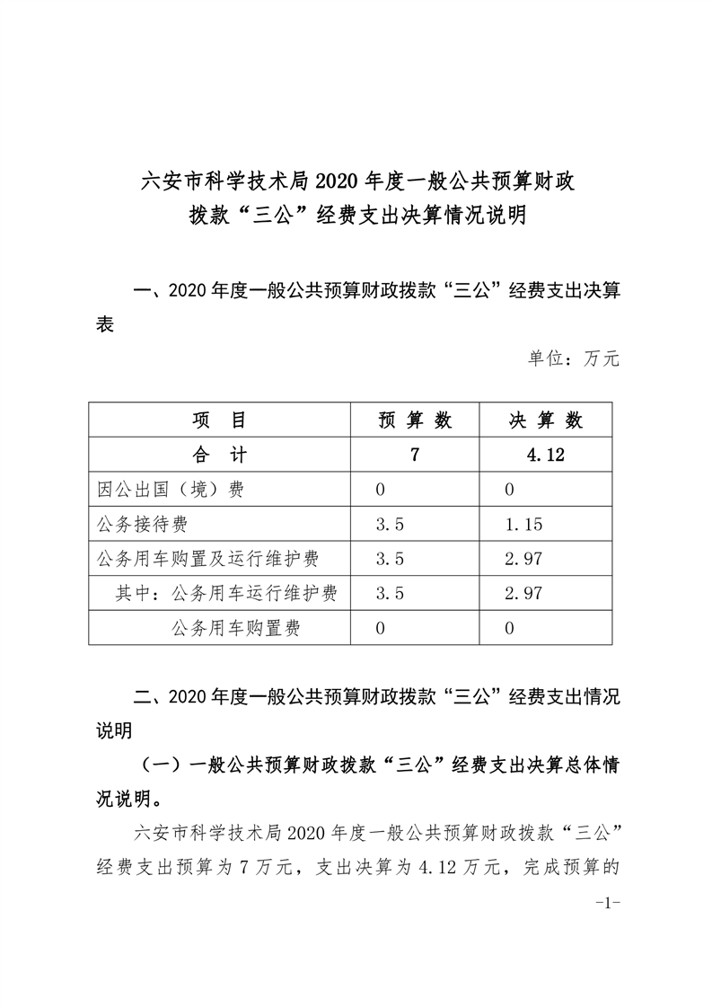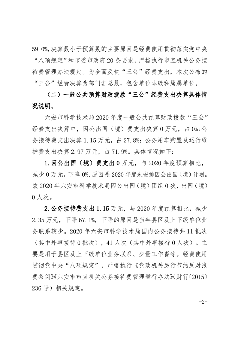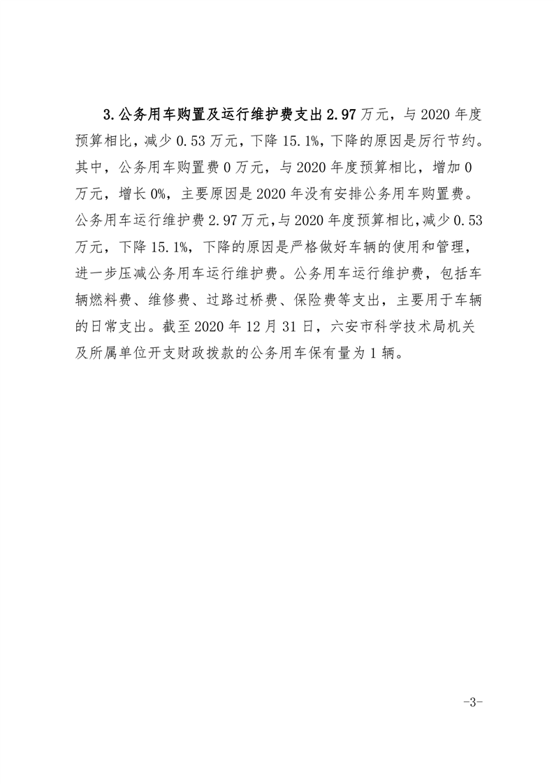 六安市科学技术局2020年度一般公共预算财政拨款“三公”经费支出决算情况