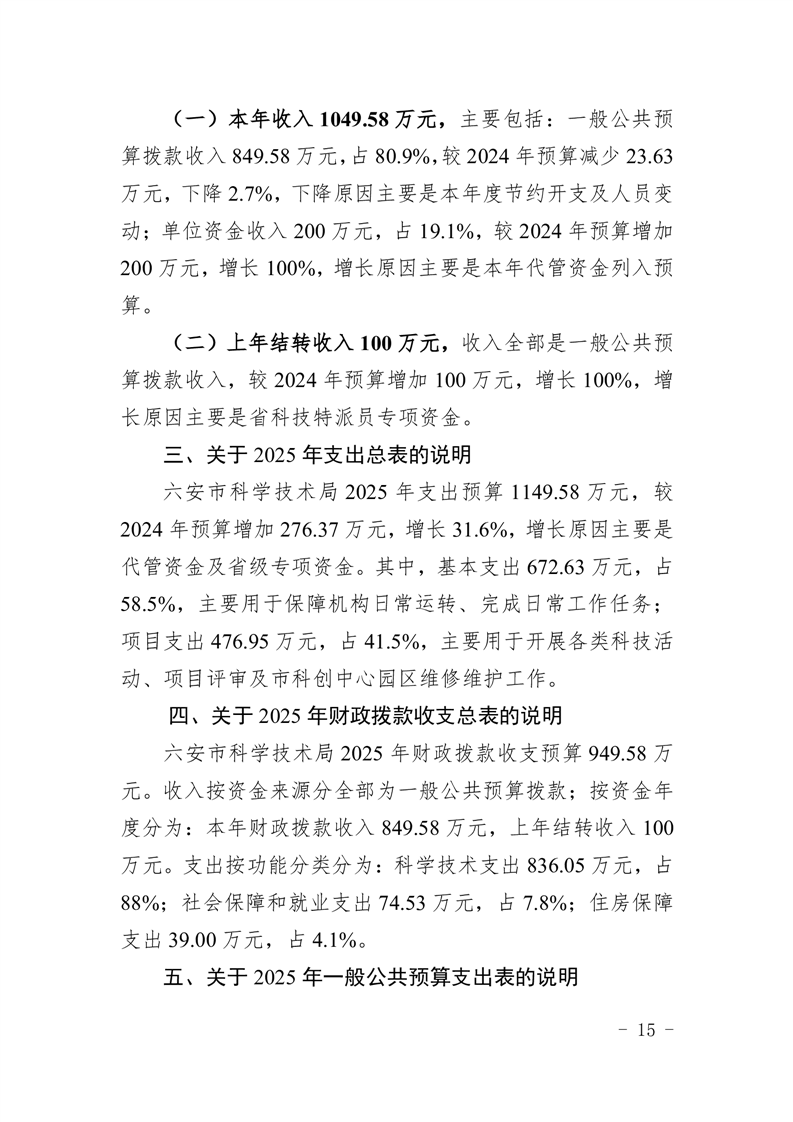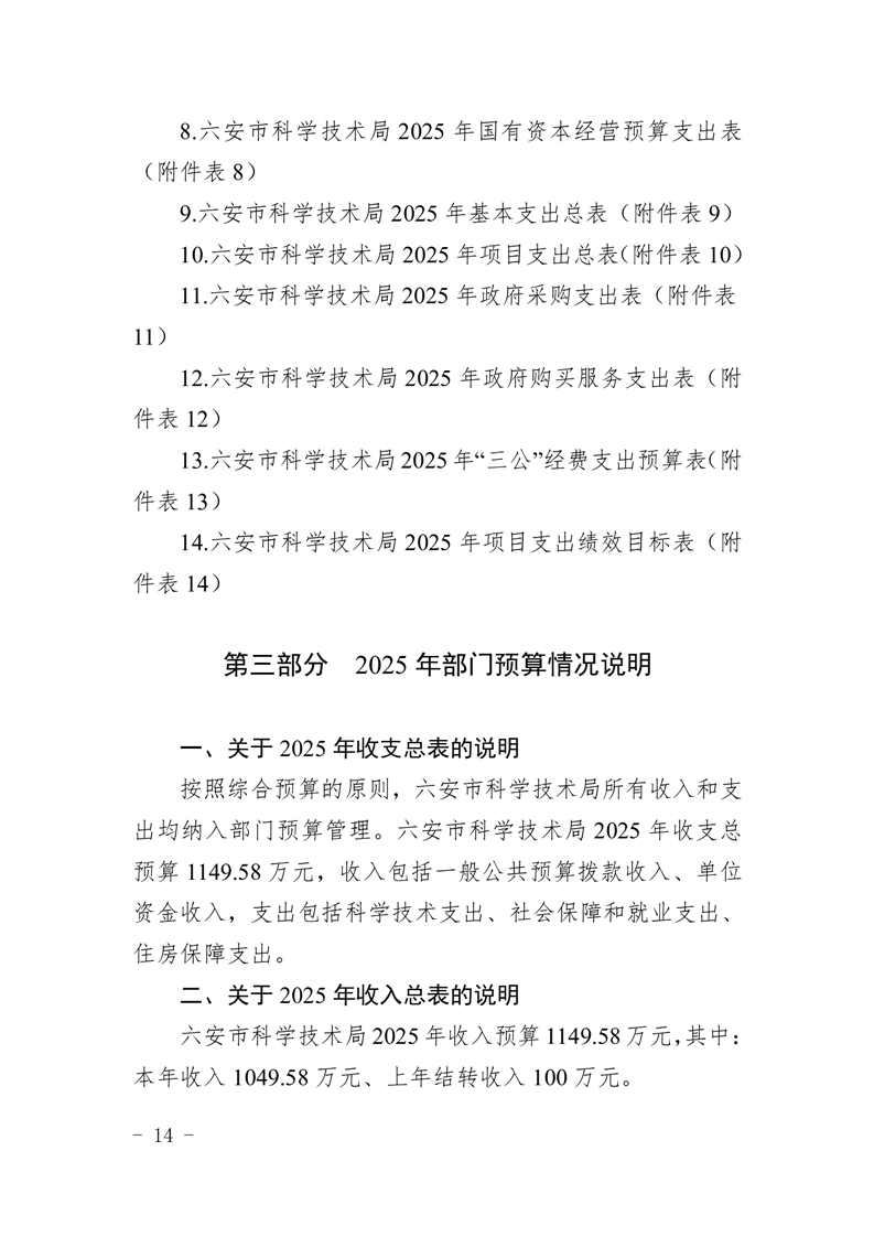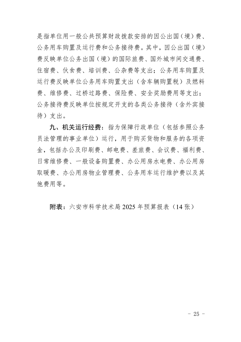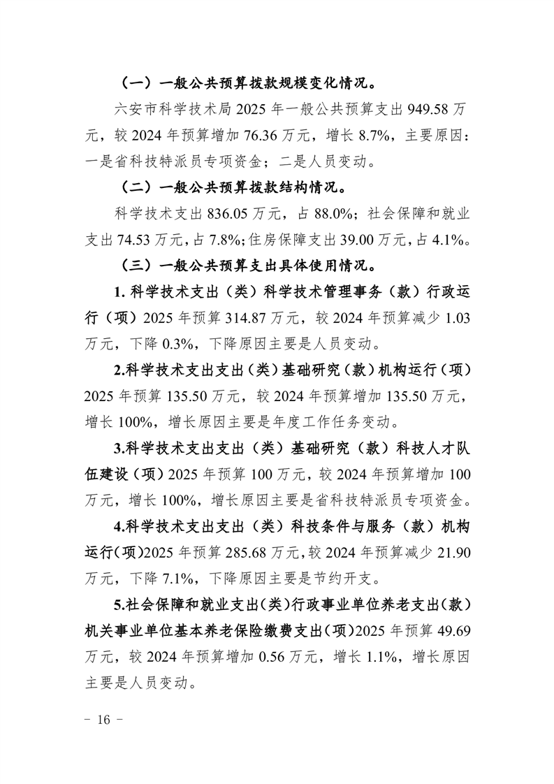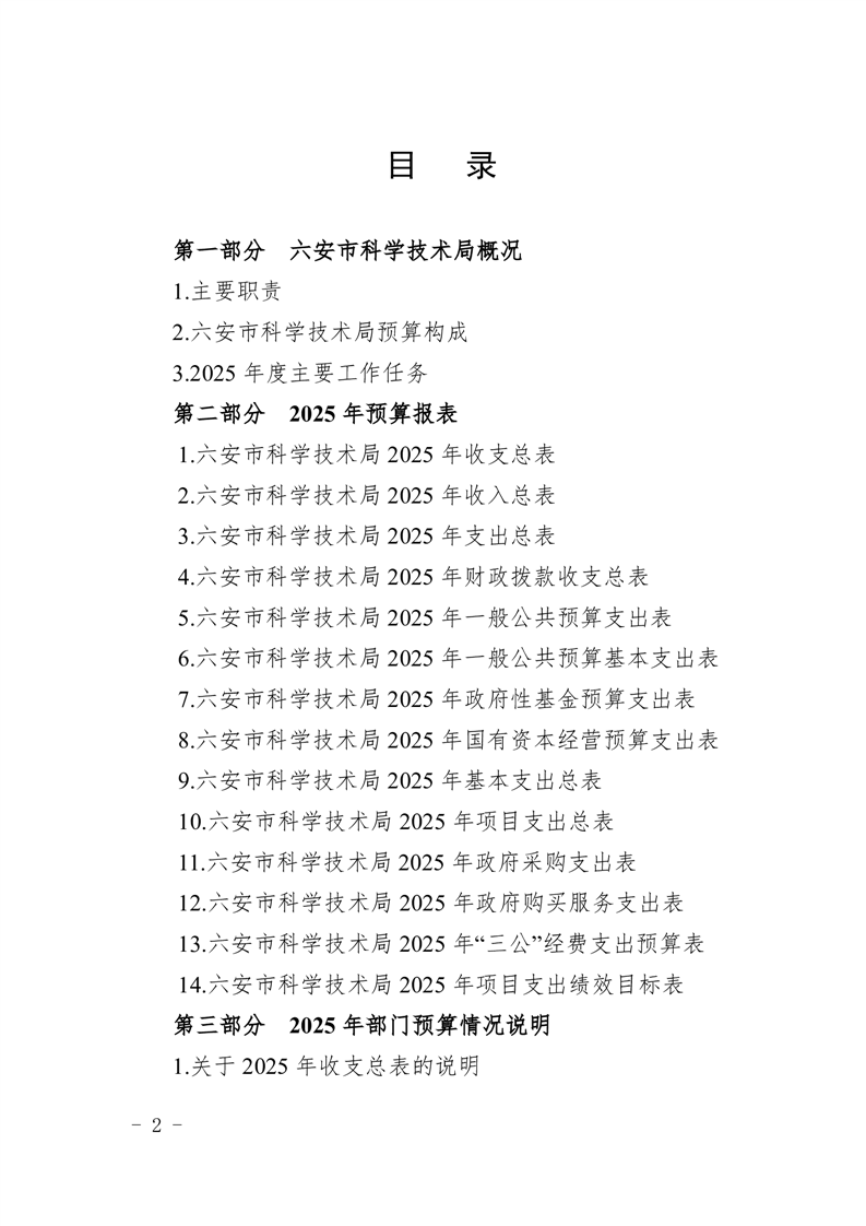 六安市科学技术局2025年部门预算公开
