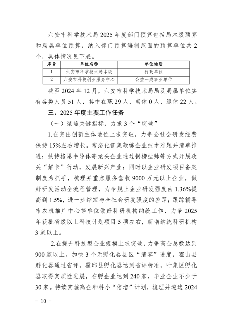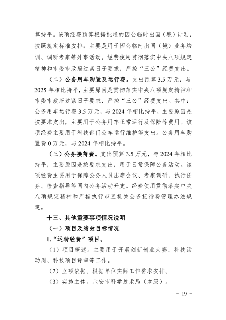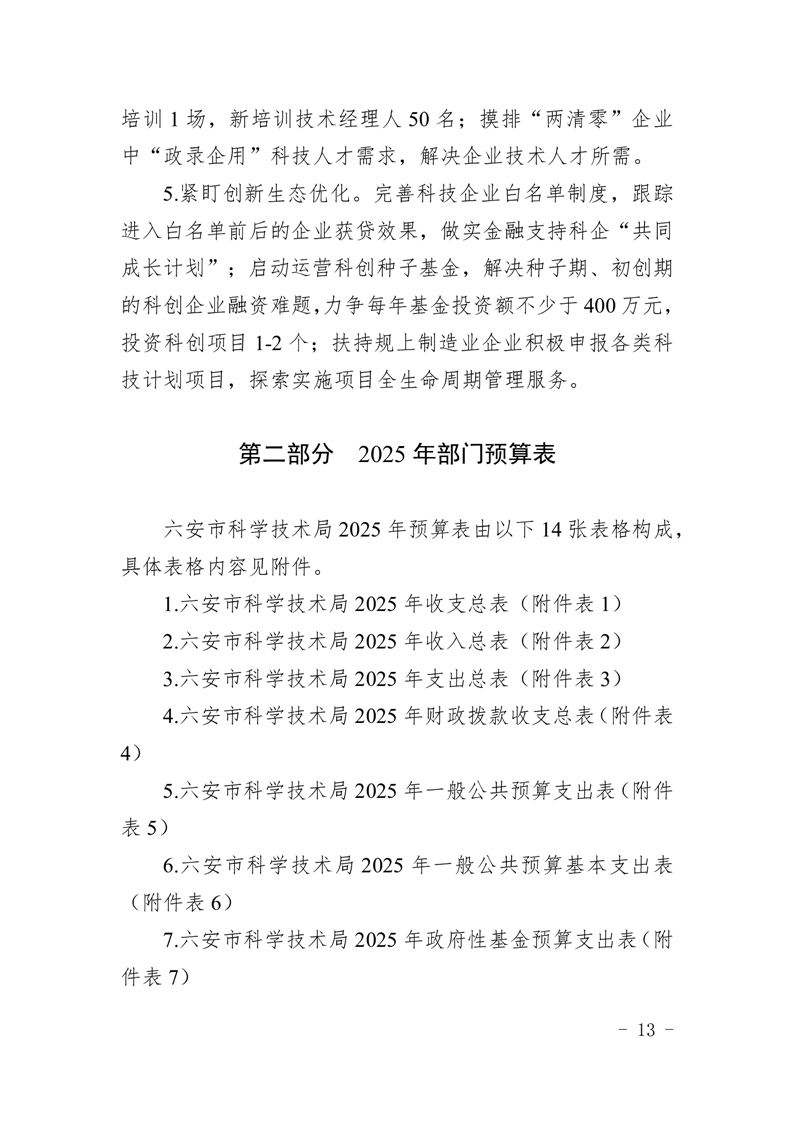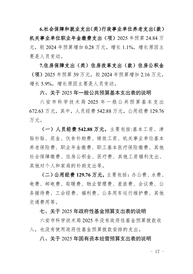 六安市科学技术局2025年部门预算公开