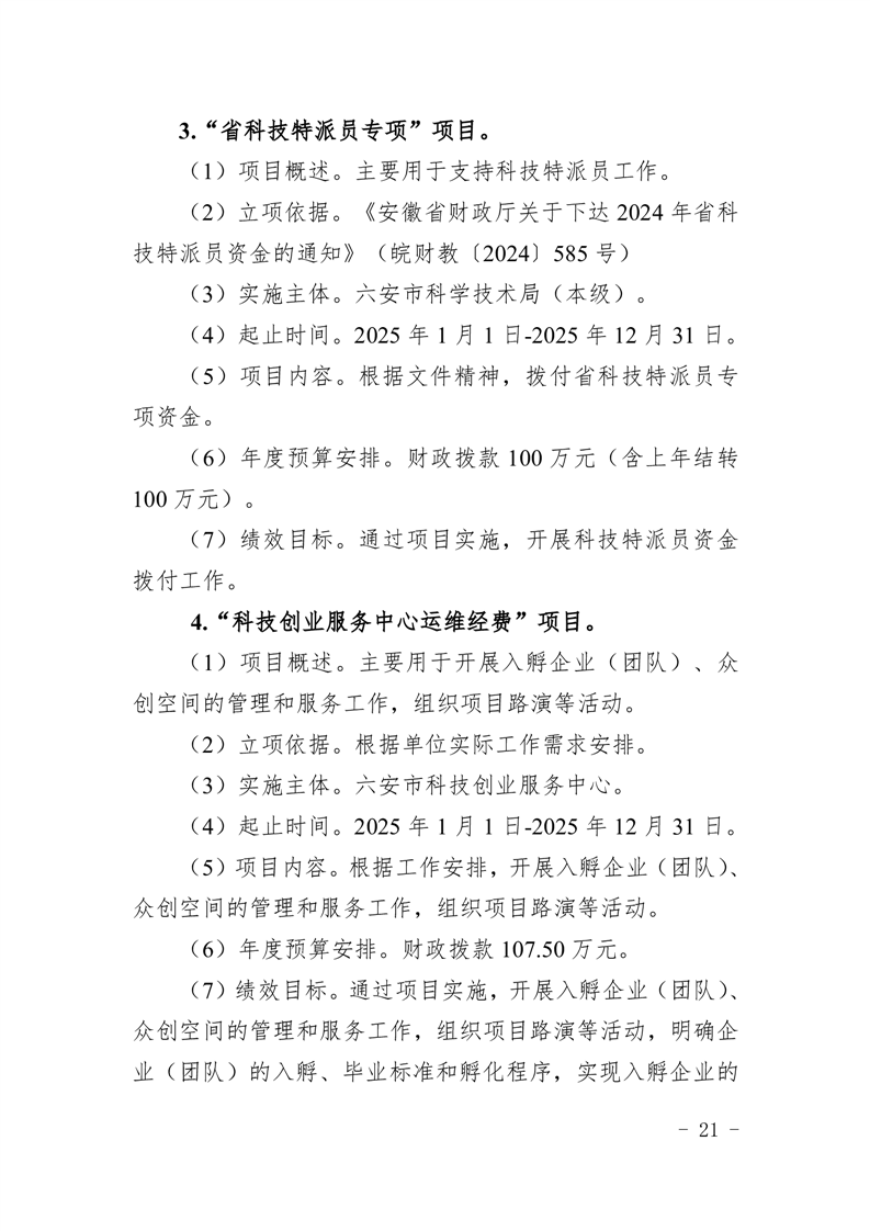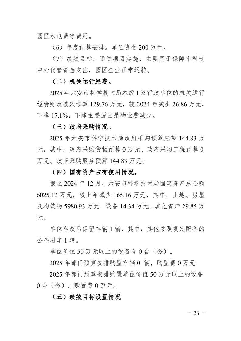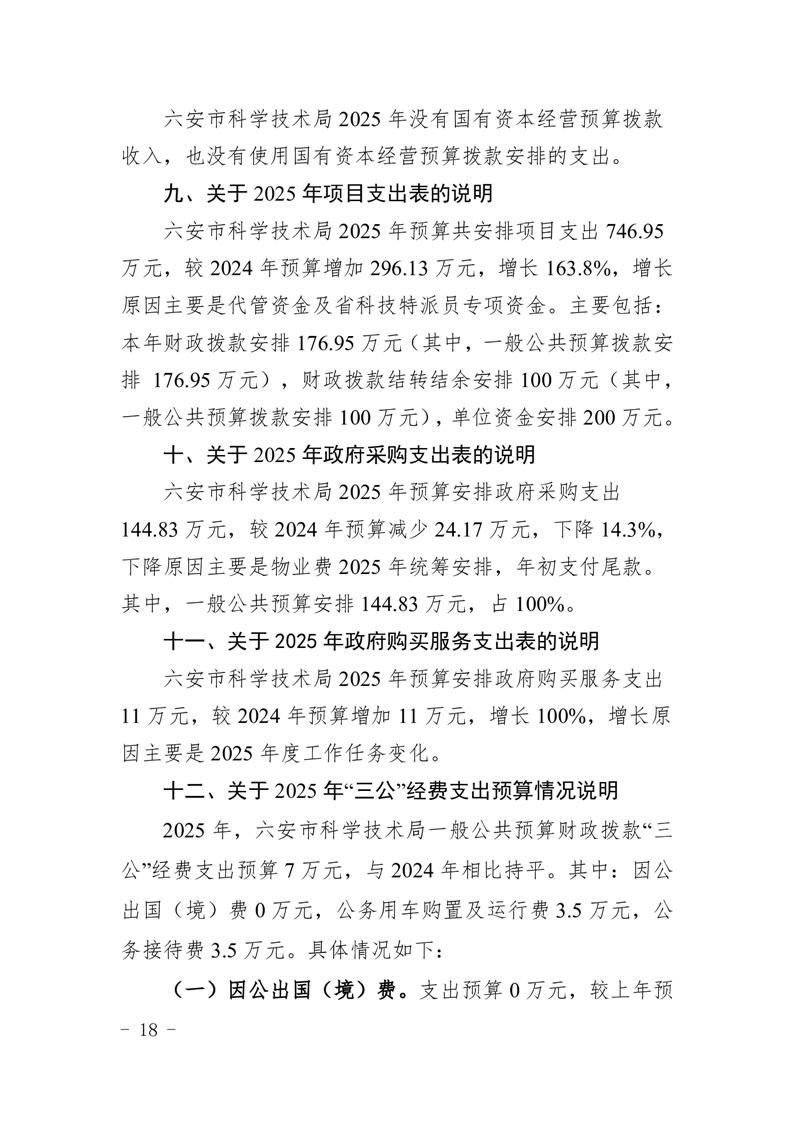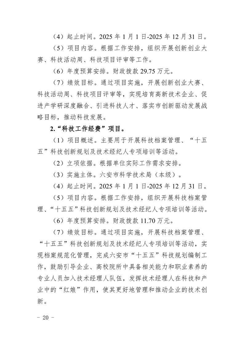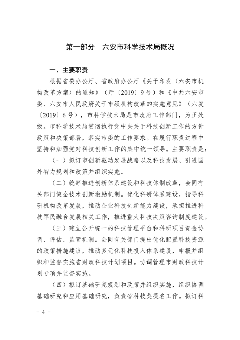 六安市科学技术局2025年部门预算公开