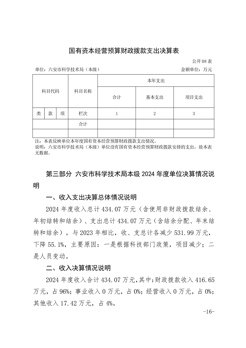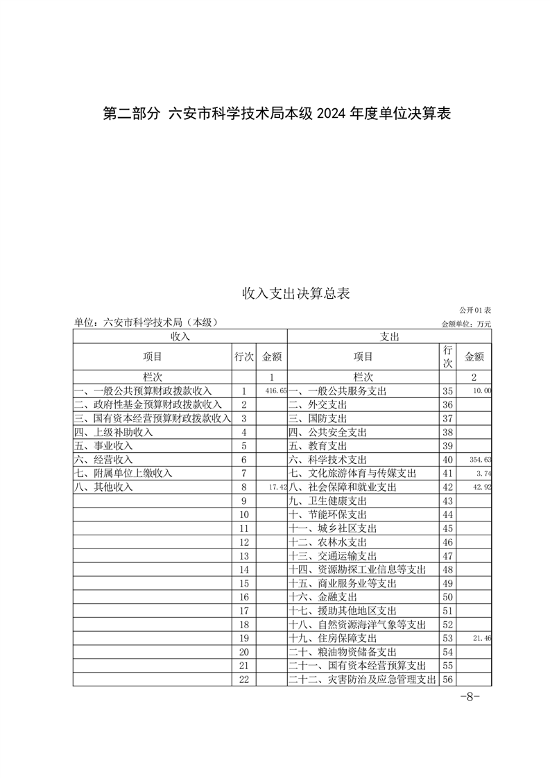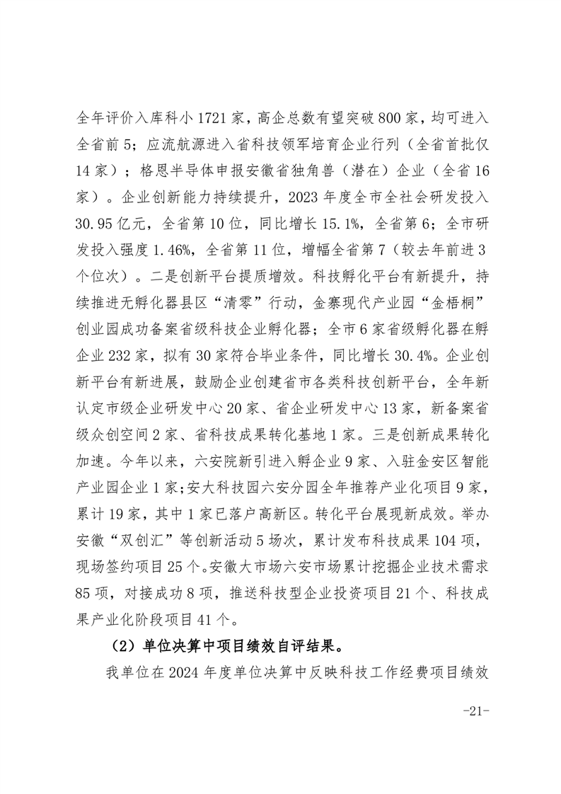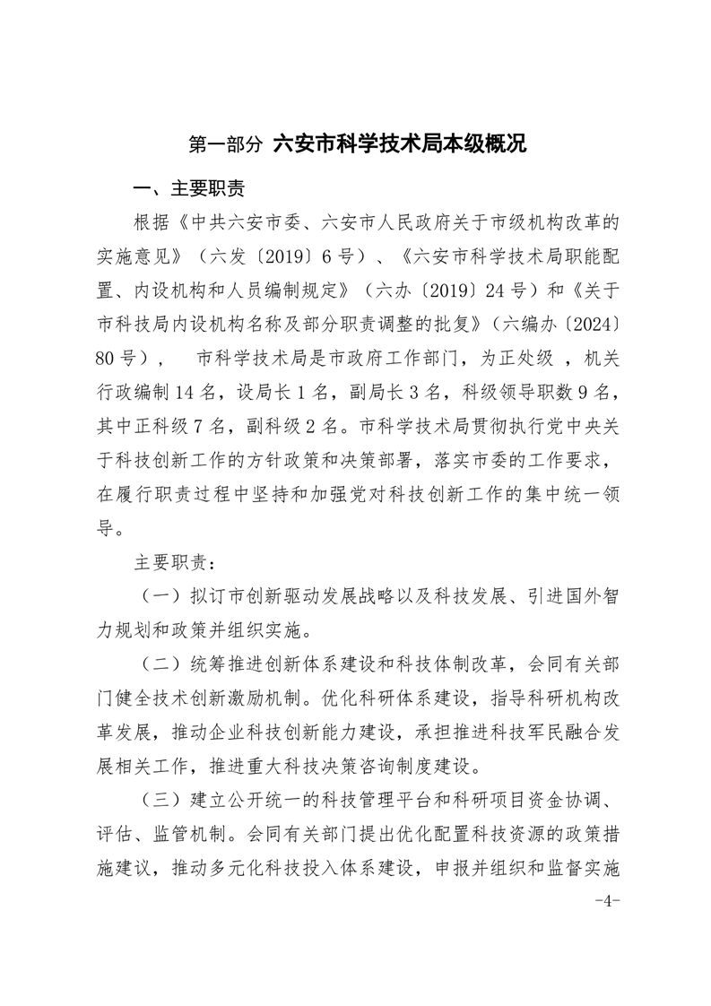 六安市科学技术局本级2024年度单位决算