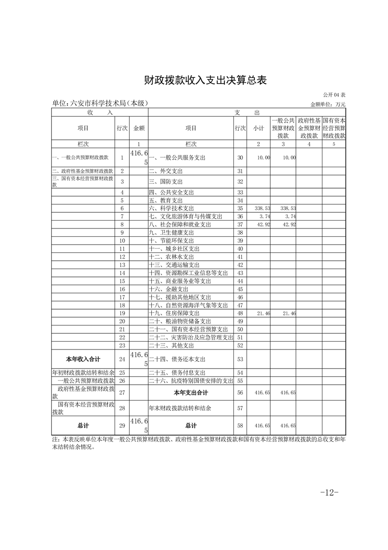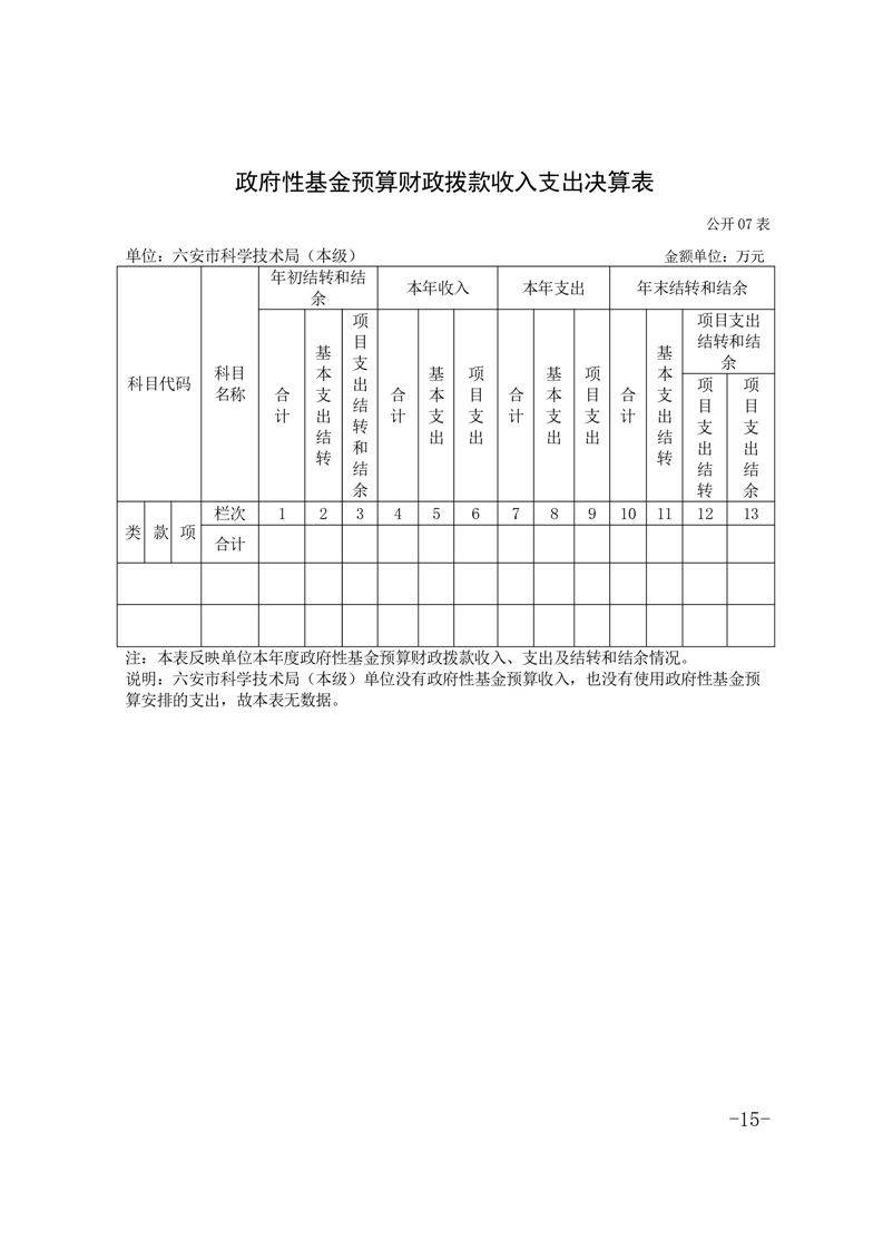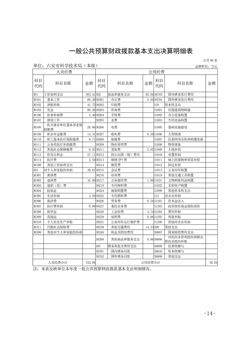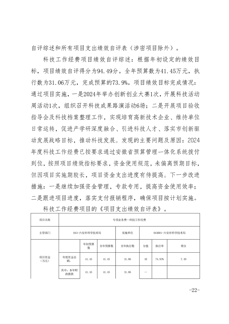 六安市科学技术局本级2024年度单位决算