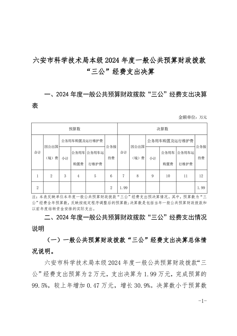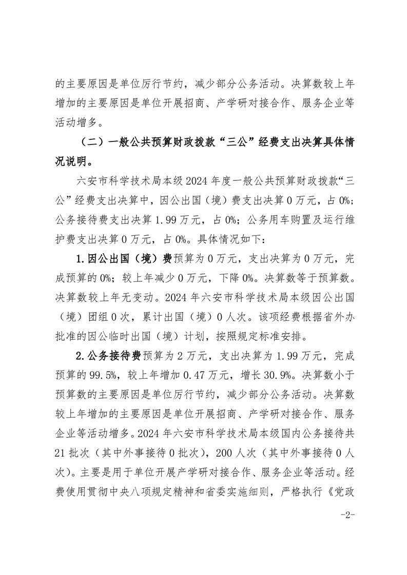 六安市科学技术局本级2024年度一般公共预算财政拨款“三公”经费支出决算情况说明