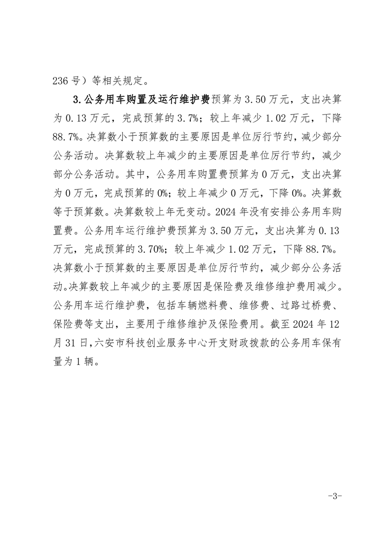 六安市科技创业服务中心2024年度一般公共预算财政拨款“三公”经费支出决算情况说明