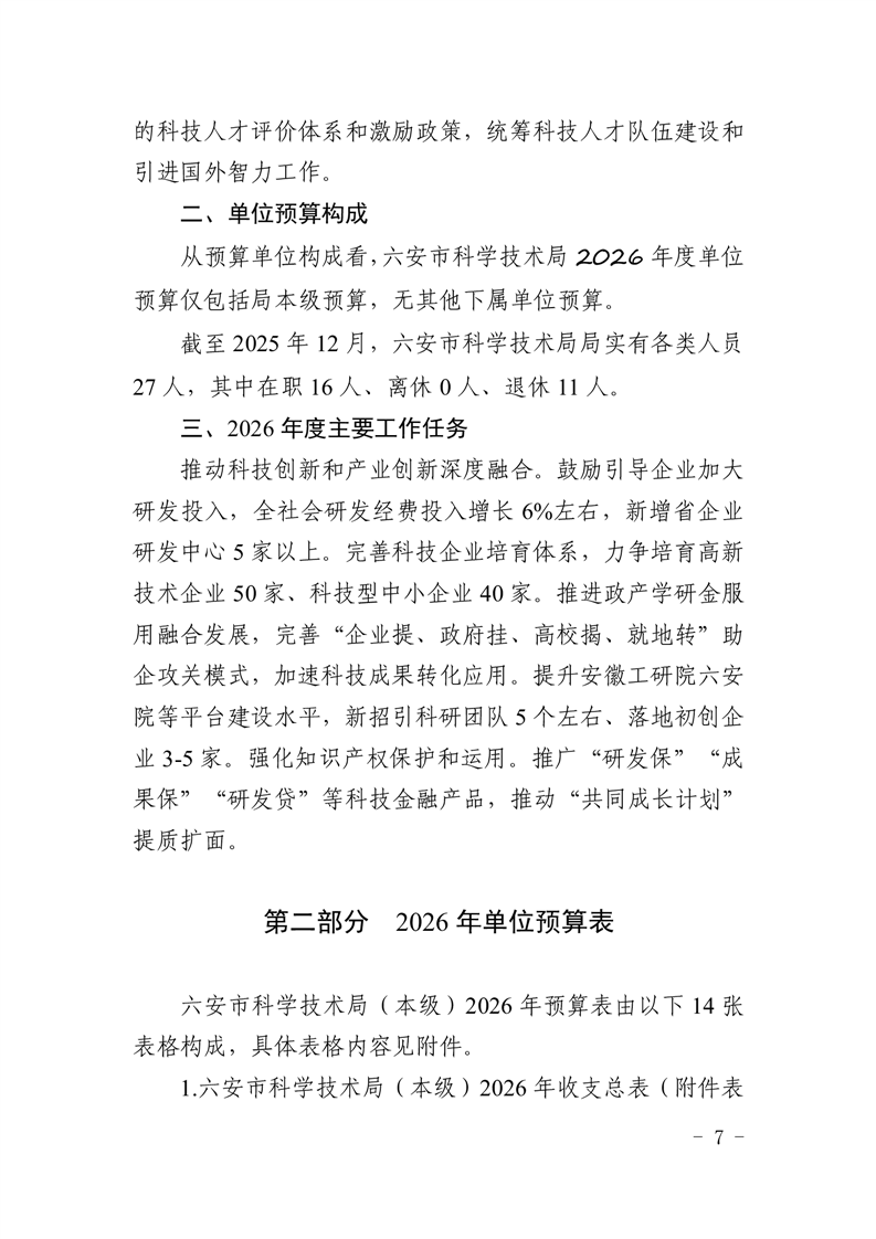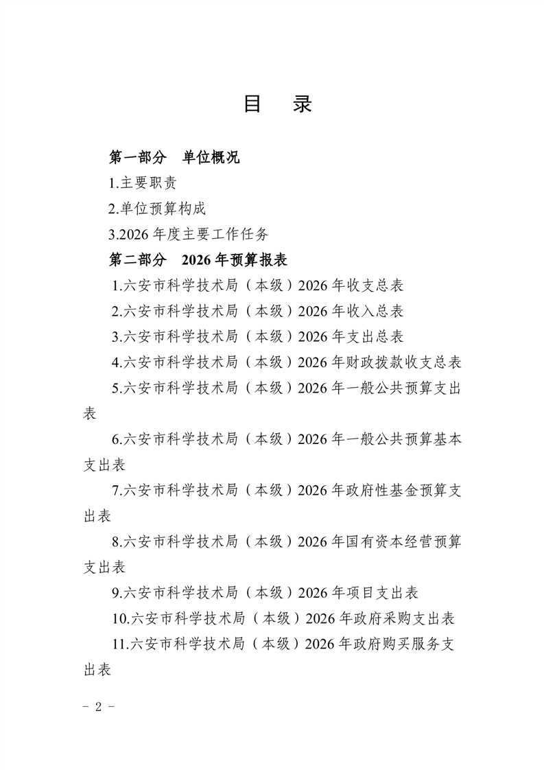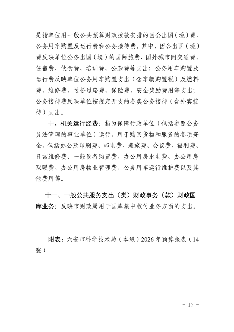 六安市科学技术局(本级)2026年单位预算公开