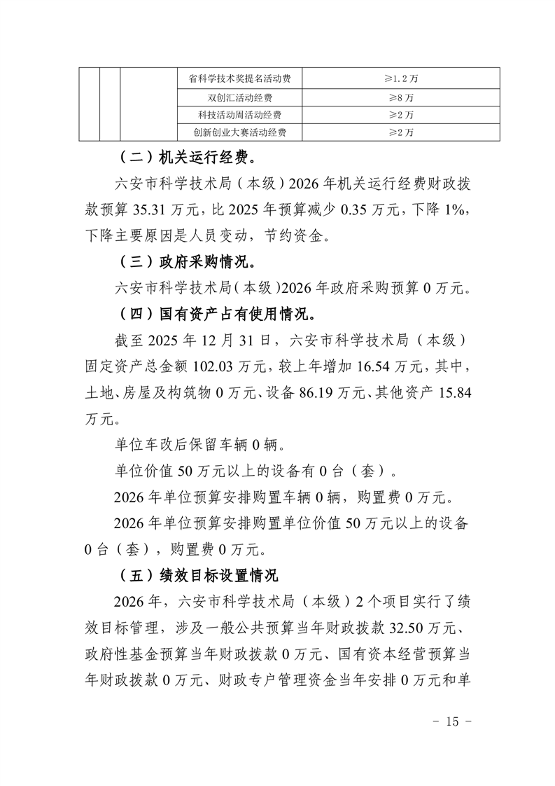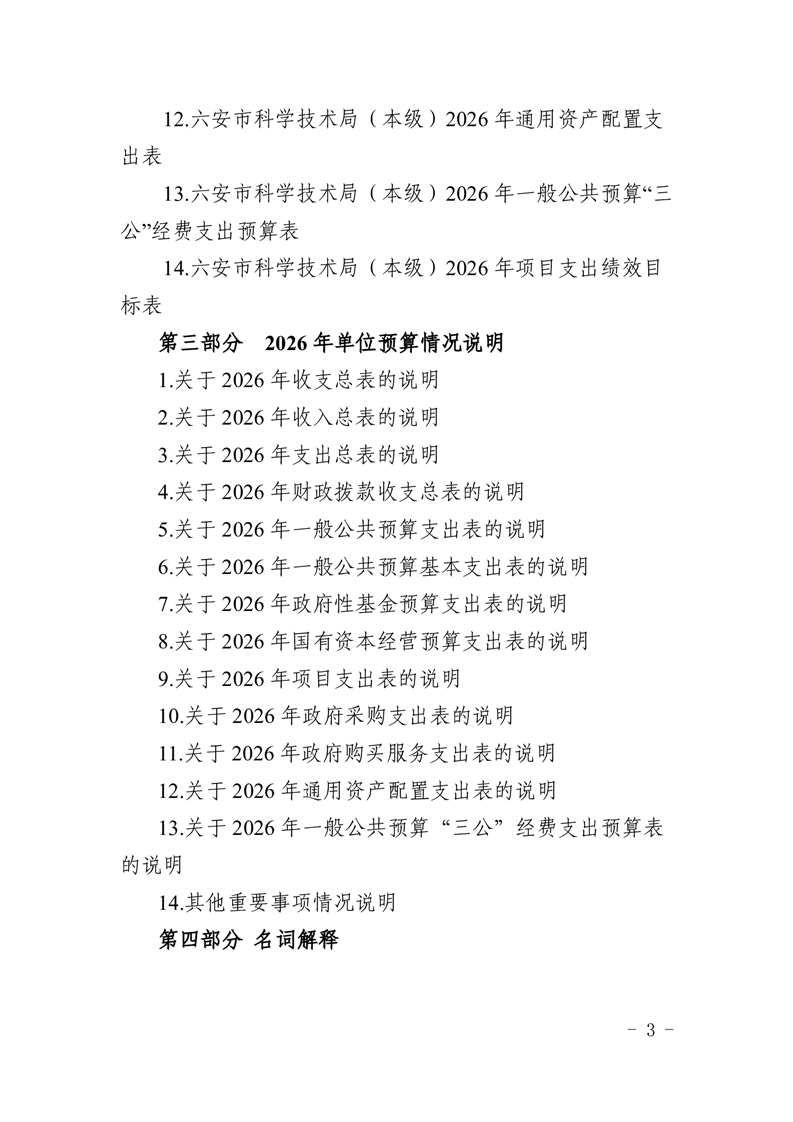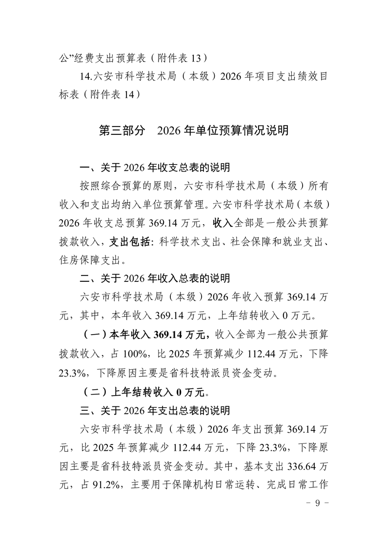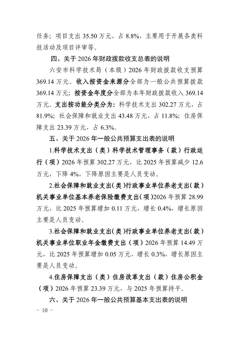 六安市科学技术局(本级)2026年单位预算公开