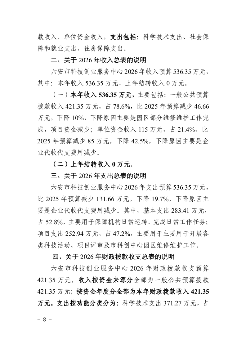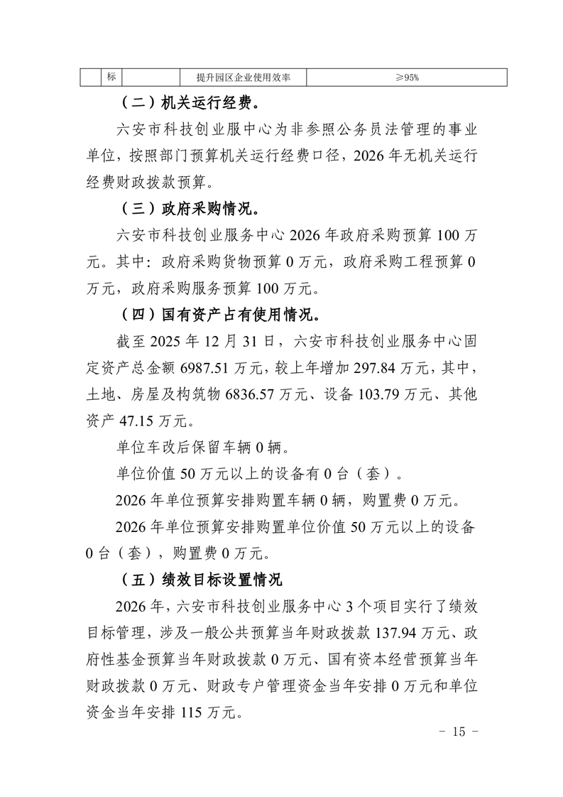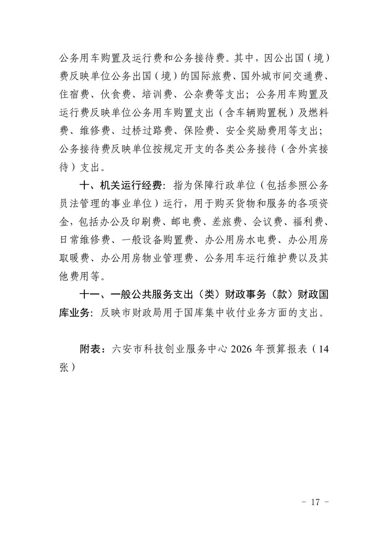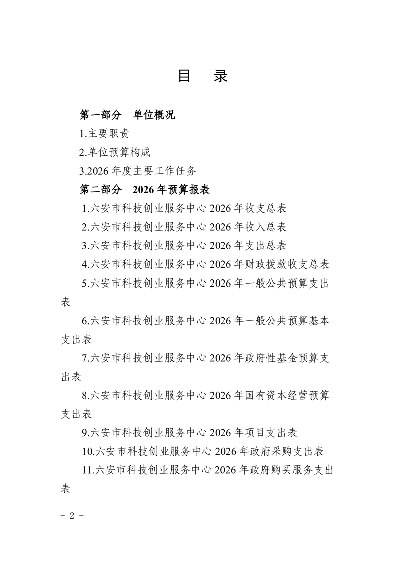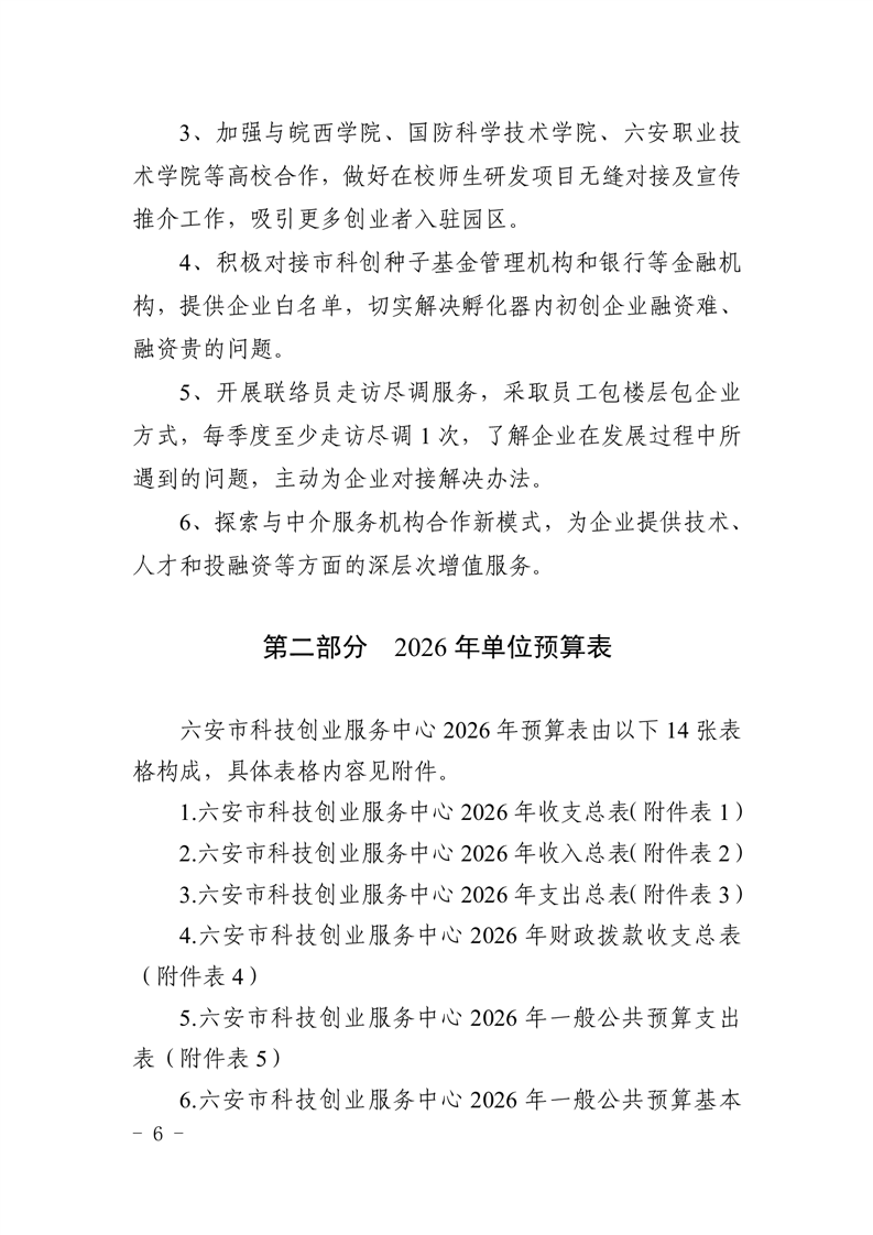 六安市科技创业服务中心2026年单位预算公开