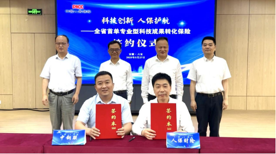 5月27日,“科技创新 人保护航”——全省首单科技成果转化保险落地皋城签约仪式在人保财险六安市分公司举行。六安市委常委、副市长王红,人保财险安徽省分公司党委委员、副总经理卫群现场致辞;市科技局党组书记章文、市人保财险总经理张军等出席签约仪式。