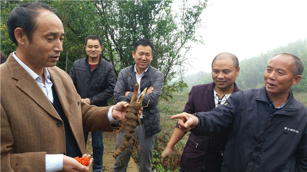 陈院长一行首先来到万何村园岭组中药材种植基地察看生产环境和种植品种,了解群众的种植意愿,然后到村部召开座谈会,商讨通过发展中药材生产引导贫困户脱贫的方法措施。陈院长认为,万何村山场面积大,森林植被好,闲置土地多,土壤肥厚,群众有发展中药材的积极性,适合中药材生产,关键是要选好适合本地生长、市场前景看好、经济效益较高、人工生产技术成熟的品种,从目前情况看,可以从种植白芨入手,采取“能人+贫困户”的模式,将中药材生产和精准扶贫工作有机地结合起来,皖西学院可以从技术指导、种苗供应等方面给予大力支持。