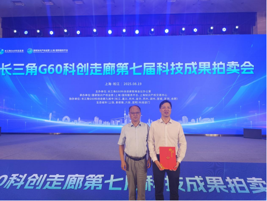 8月19日,第七届长三角G60科创走廊科技成果拍卖会在上海松江区举行。会上,安徽工业技术创新研究院六安院院长胡坤被授予“长三角G60科创经理人”称号,市科技局党组书记章文受邀为胡坤颁发证书。